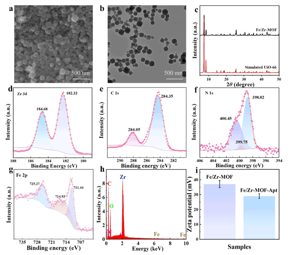 图2.Fe/Zr-MOF的制备方法和表征结果