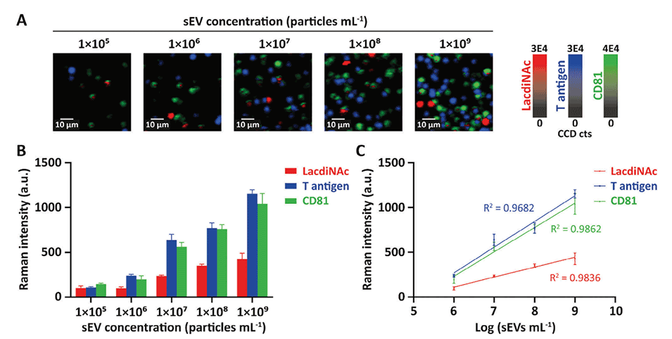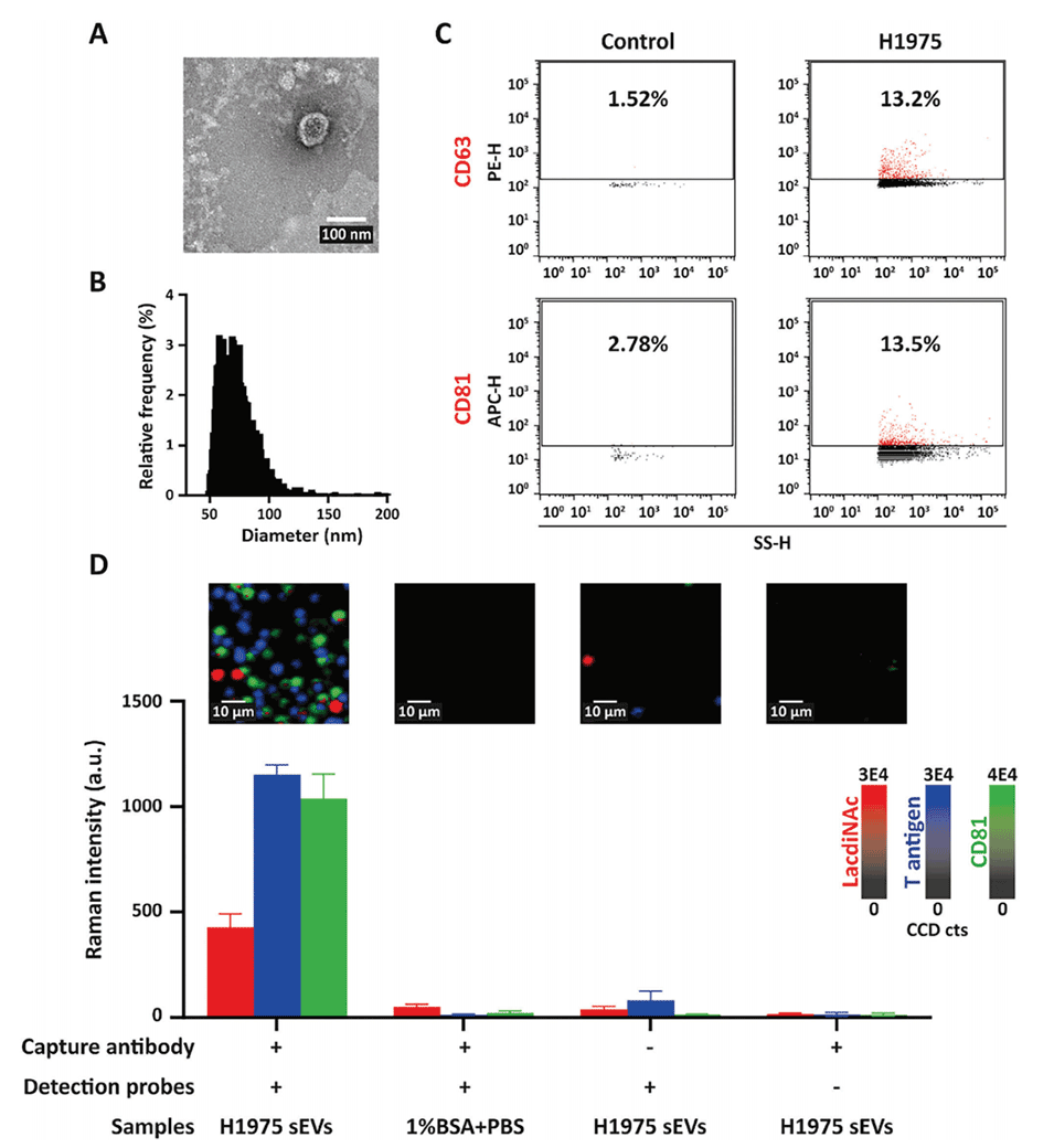 1、高灵敏度:SERS技术使得EV-GLYPH测定法能够检测到更低浓度的sEVs,提高了早期肺癌的发现概率。