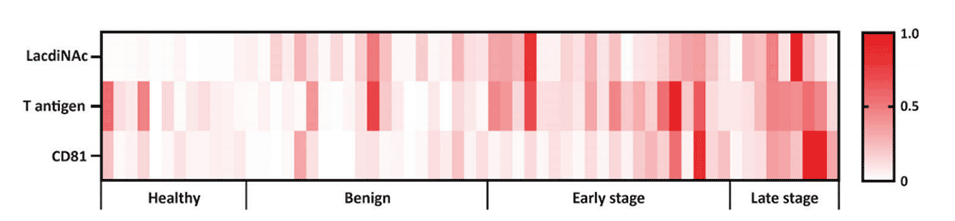 图6.EV-GLYPH检测在癌症筛查中的应用。