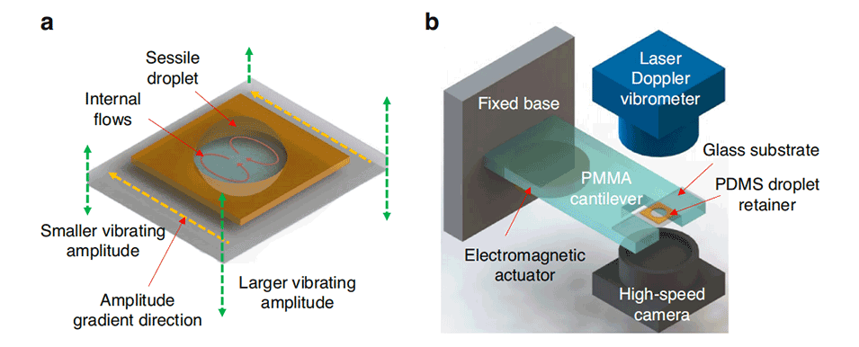 图1.振荡基底引发液滴内部流动的示意图。