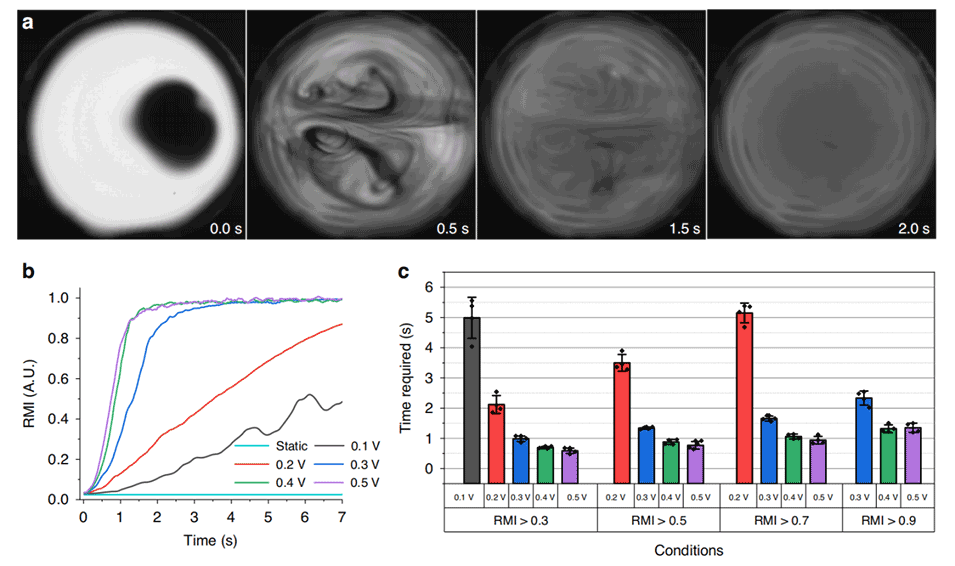 3、适用于小体积滴液:该策略特别适用于微流控系统中常见的小体积(纳升到微升级)滴液,能够有效地在这些小液滴内实现快速和均匀的混合。