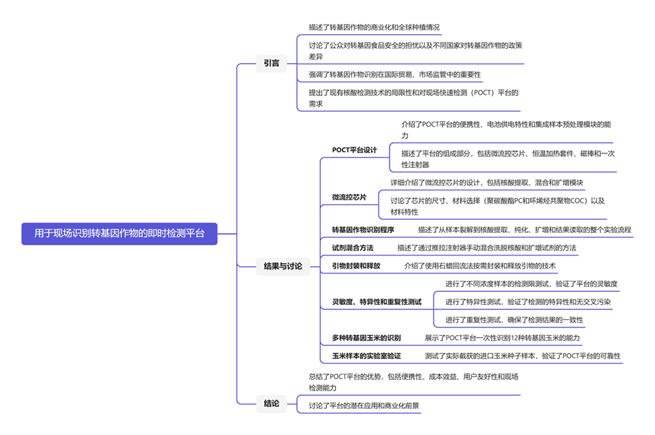 1、本文介绍了一种现场即时检测平台,无需实验室环境即可在不到40分钟的时间内识别出12种类型的转基因作物。