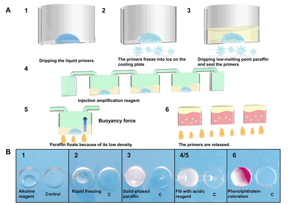 图5.石蜡回流法确保引物在扩增室中密封并按需释放。