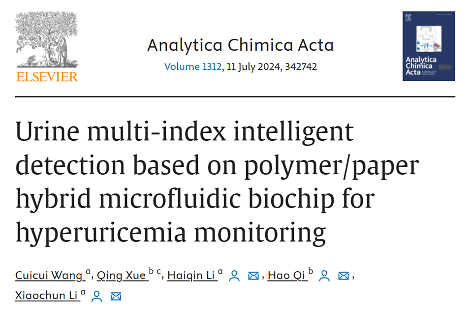近期,太原理工大学李晓春教授团队联合山西医科大学第一医院齐昊团队开发了一种基于智能手机辅助纸基微流控生物芯片的用户友好型即时(POC)检测系统(即“Smart-HUA-Monitor”),用于比色定量测定HUA尿液标志物,包括尿酸(UA)、肌酐(CR)和pH值。相关研究以“Urine multi-index intelligent detection based on polymer/paper hybrid microfluidic biochip for hyperuricemia monitoring”为题目,发表在期刊《Analytica Chimica Acta》上。