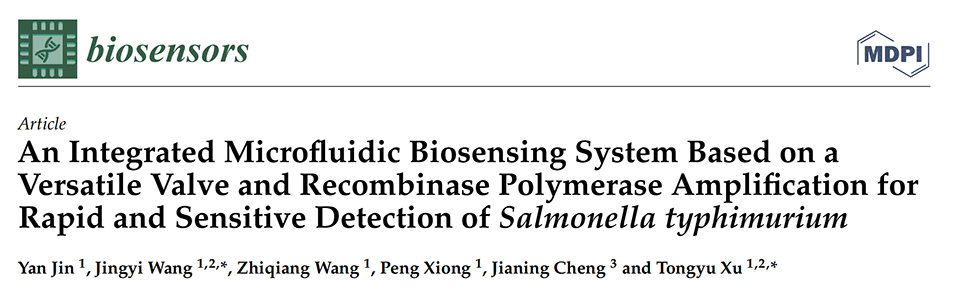 近期,沈阳农业大学许童羽教授、王敬依等人开发了一种用于快速灵敏检测鼠伤寒沙门氏菌的集成微流控生物传感系统。该生物传感系统由带多功能阀的微流控芯片、用于核酸检测的重组酶聚合酶扩增(RPA)和定制的实时荧光检测系统组成。相关研究以“An Integrated Microfluidic Biosensing System Based on a Versatile Valve and Recombinase Polymerase Amplification for Rapid and Sensitive Detection of Salmonella typhimurium”为题目,发表在期刊《Biosensors》上。