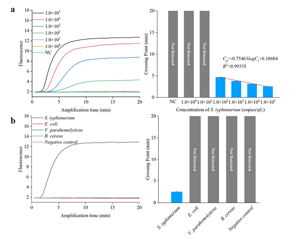 图6.使用qPCR仪器进行敏感性和特异性分析。