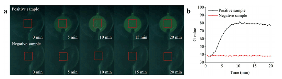 图9.基于微流控生物传感系统的实时RPA分析。