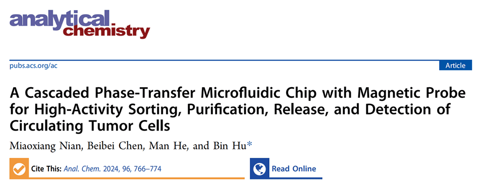近期,武汉大学胡斌教授课题组开发了一种新型级联相转移微流控芯片,结合磁性探针和电感耦合等离子体质谱(ICP-MS)技术,实现了对循环肿瘤细胞(CTCs)的高效分选、纯化、释放和高灵敏度检测,为早期癌症诊断提供了一种高集成度、高细胞活性和高回收率的分析方法。相关研究以“A Cascaded Phase-Transfer Microfluidic Chip with Magnetic Probe for High-Activity Sorting, Purification, Release, and Detection of Circulating Tumor Cells”为题目,发表在期刊《Analytical Chemistry》上。