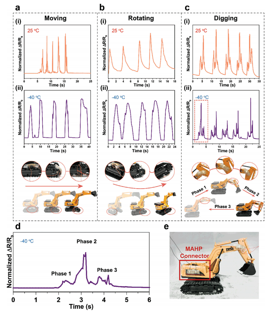 图5.MAHP在室温和极寒环境下的传感和导电性能表征。