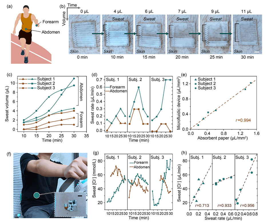 图4.运动时的体表汗液分析。