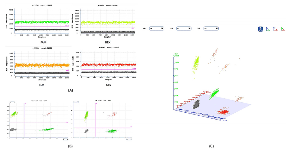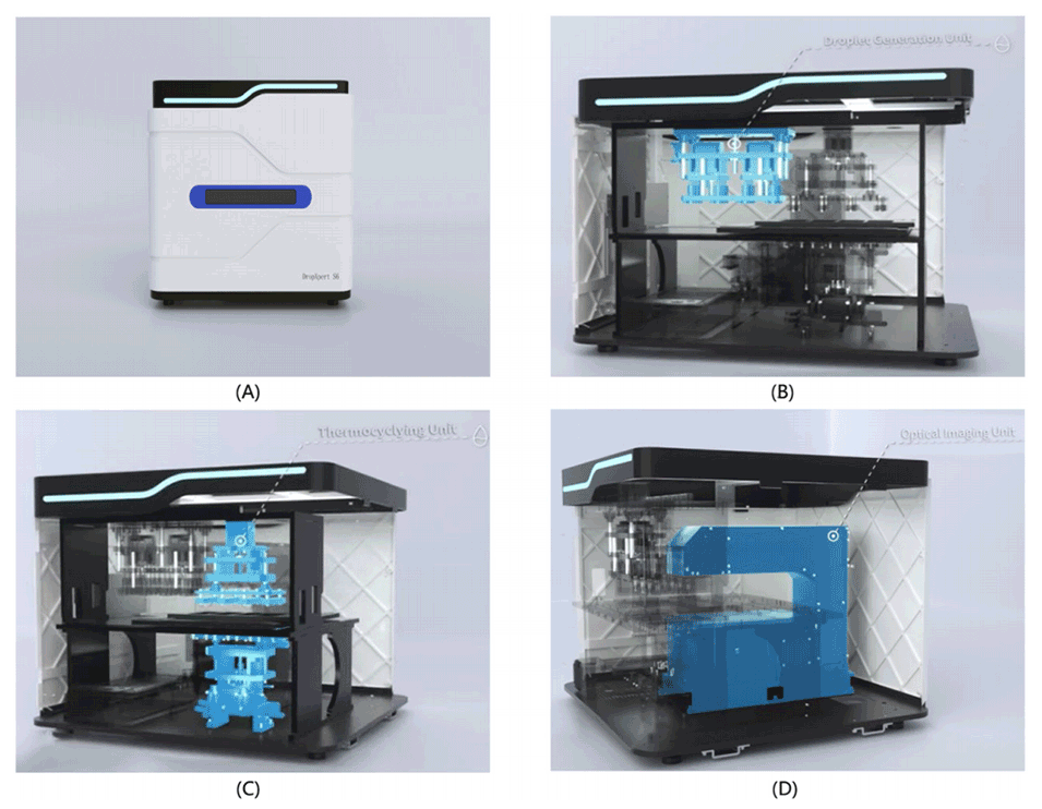 1、本研究开发了一种创新与集成的新型数字液滴PCR平台,即DropXpert S6系统,其通过尖端的微流控技术,将液滴生成、PCR扩增和荧光成像等功能集成于一体,实现了全自动化操作。