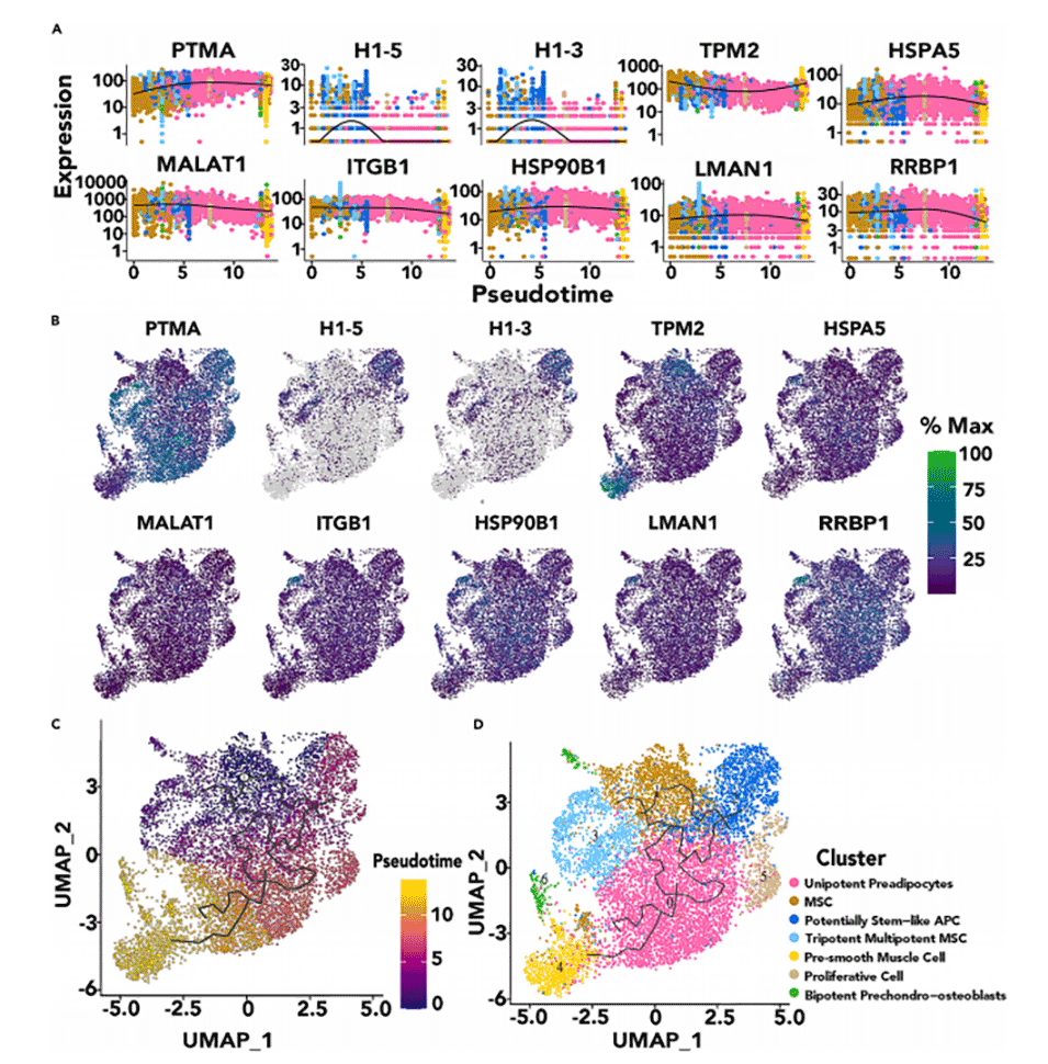 图7.hMSCs中前10个基因的单细胞轨迹