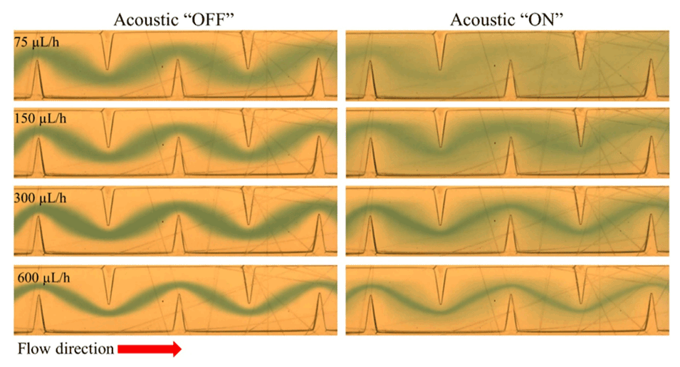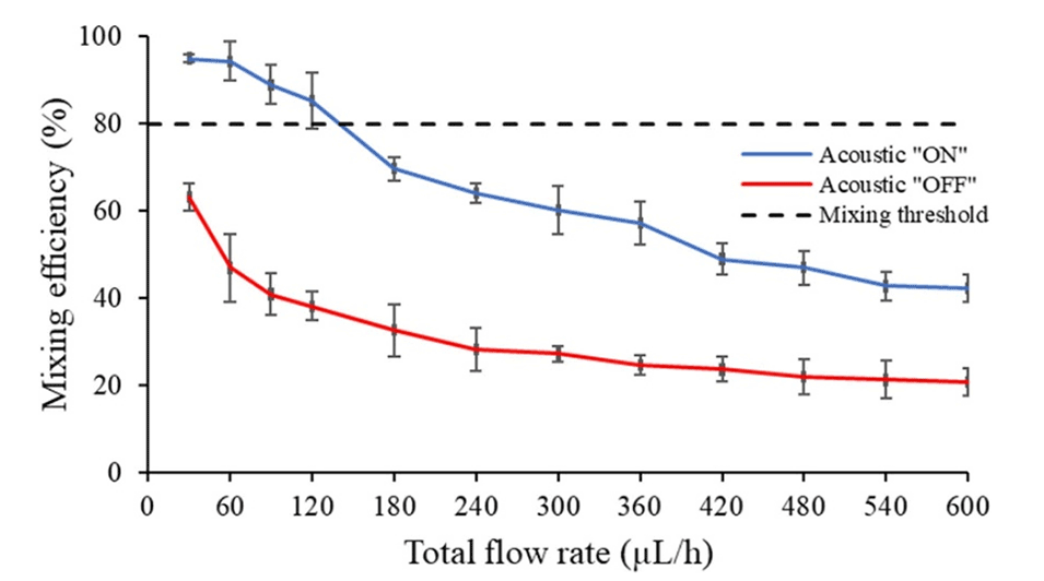 图10.336.6kHz、40VPP和不同总流速下的声流微混合。