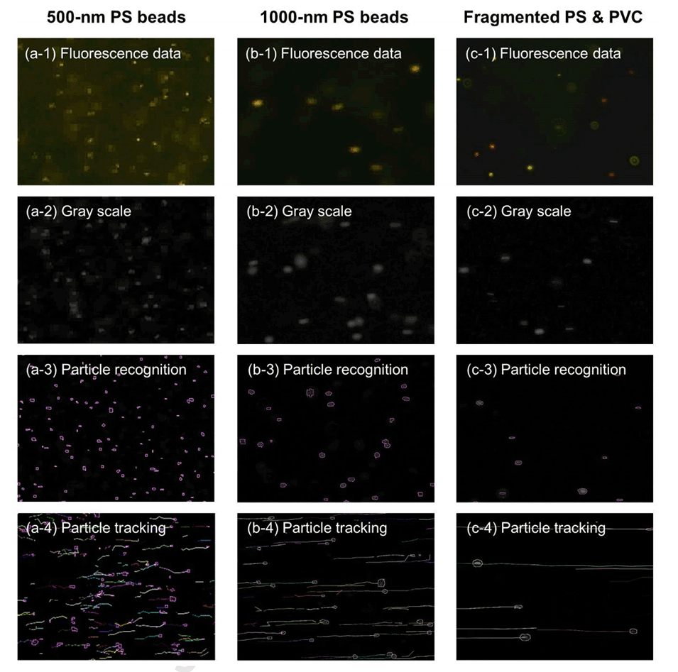 2、结果表明,该系统能够快速定量和测量500nm和1000nm的PS亚微米级微塑料球,以及碎片状PS和PVC亚微米级微塑料,并通过荧光标记实现PS和PVC亚微米级微塑料的实时区分。