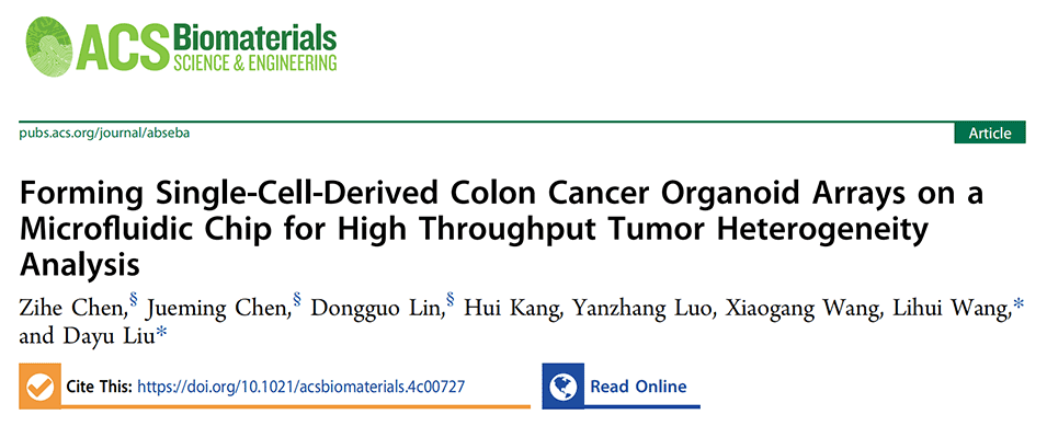 近期,广州市第一人民医院刘大渔研究员团队与暨南大学王丽辉教授团队合作,开发了一种新型微流控芯片,该芯片包含30,000个微孔,能够高通量地培养单细胞衍生的结肠癌类器官(STO)。这一技术的应用有效促进了肿瘤异质性的分析,并为个性化治疗和药物筛选提供了新的途径。研究成果以“Forming Single-Cell-Derived Colon Cancer Organoid Arrays on a Microfluidic Chip for High Throughput Tumor Heterogeneity Analysis”为题,发表在国际知名期刊《ACS Biomaterials Science & Engineering》上。