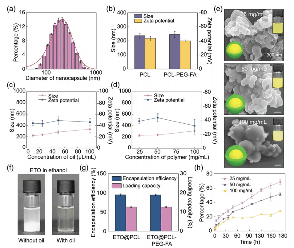 图3.具有可调壳厚和可控释放特性的核壳纳米胶囊的表征。