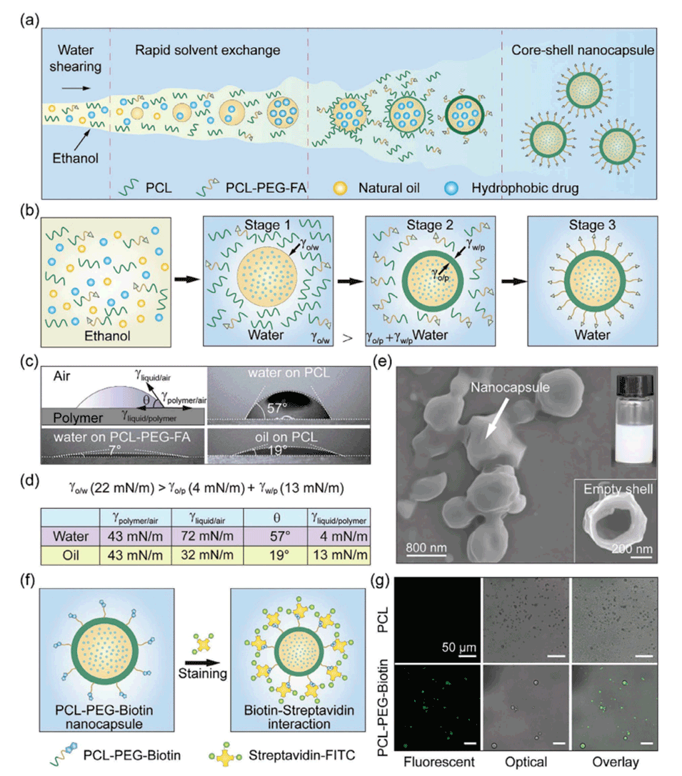 图1.微流控一步制备具有可调表面功能的生物相容性核壳纳米胶囊,以增强药物递送。