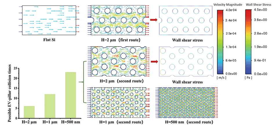3、流体动力学模拟:利用计算流体动力学(CFD)模拟来优化微流控通道内的流场分布,减少流体剪切力,增加EV与纳米棒的接触时间。