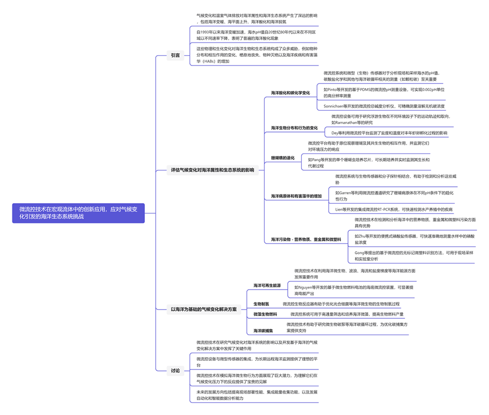 4、文章总结了微流控技术在理解和应对气候变化对海洋环境和生态影响方面的重要性,并展望了未来的创新机会,如现场监测能力的提升、与智能数据分析的结合等,旨在为海洋生态系统的保护和气候变化的缓解提供更有效的策略和工具。