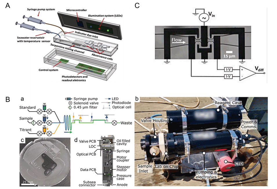 图1.利用微流控技术监测海洋酸化和碳化学。