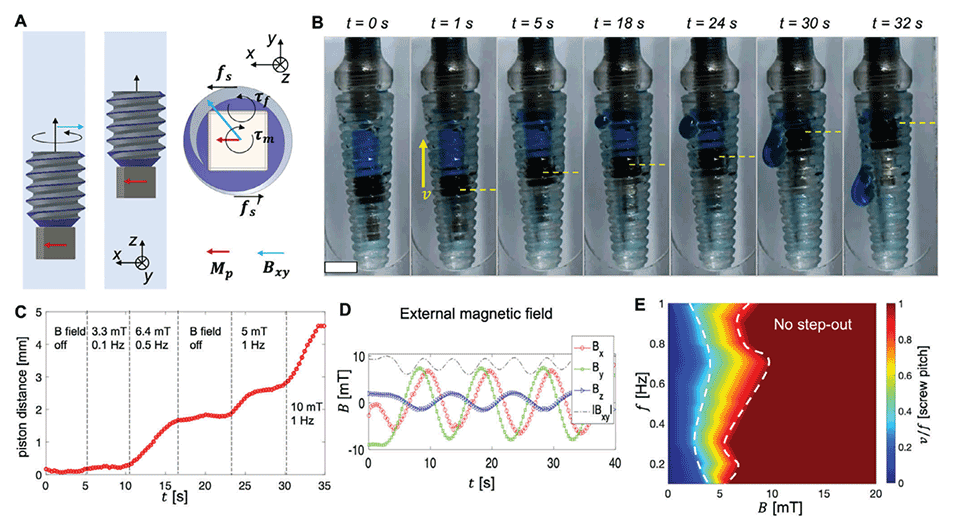 图3.牙科植入物中磁性螺杆活塞的液体泵送性能表征。