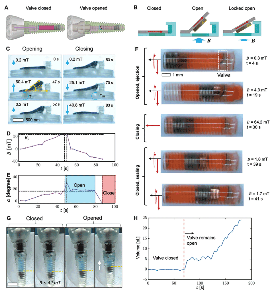 1、本研究开发了一种可通过外部磁场(<65mT)远程激活的微型泵和阀门系统,在牙科植入体内实现了最高52μL的液体储存和释放。