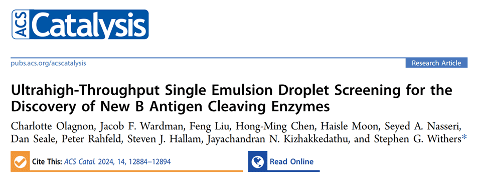 近期,有研究人员开发了一个简单且稳健的超高通量微流控筛选系统,用于寻找能够将B型红细胞转化为通用O型红细胞的高效α-半乳糖苷酶。通过这一系统,成功鉴定出α-1,3-半乳糖苷酶PvGH110,为血液供应提供了一种高效、简便的酶发现工具。相关研究以“Ultrahigh-Throughput Single Emulsion Droplet Screening for the Discovery of New B Antigen Cleaving Enzymes”为题目,发表在期刊《ACS Catalysis》上。
