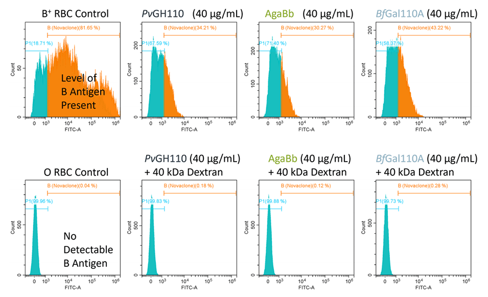 图4.测试了GH110酶在B+ RBC上的活性。