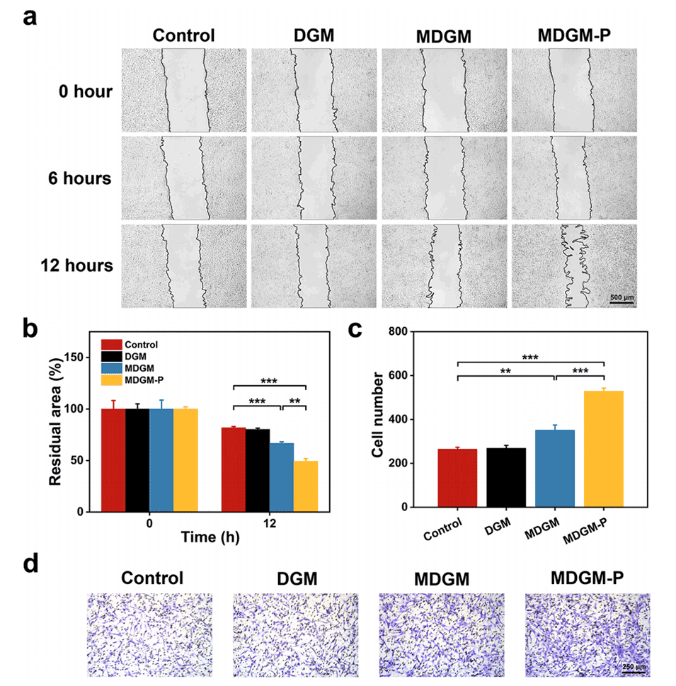 图5.MDGM-Ps促进细胞迁移和趋化性。