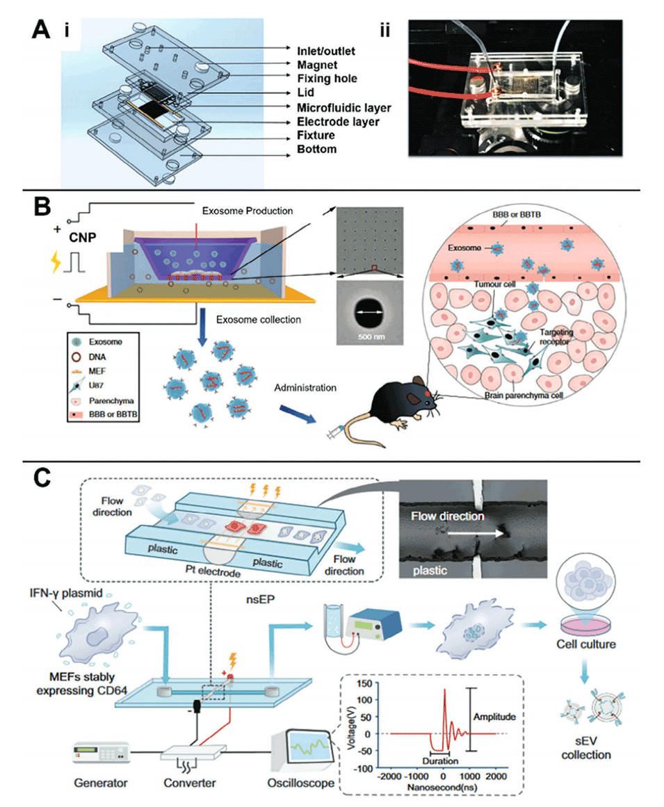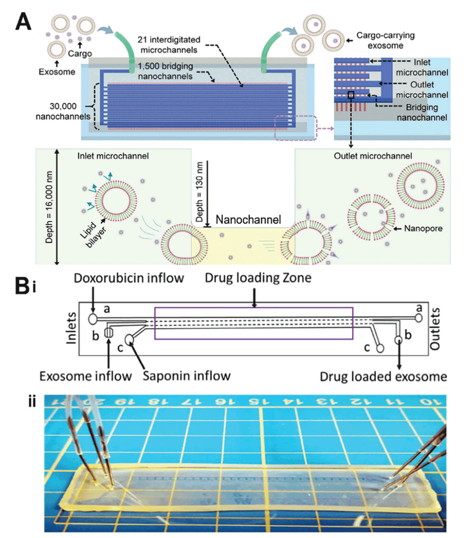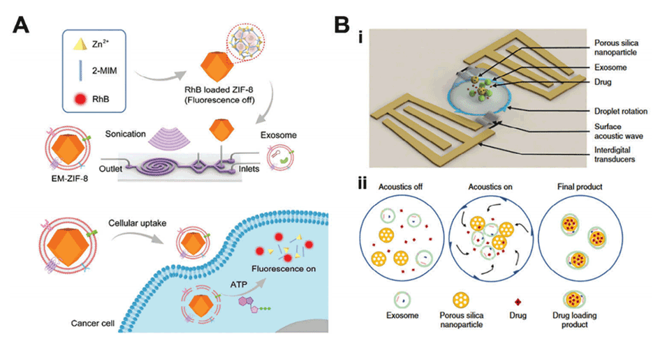 图8.基于微流体机械技术的细胞衍生EVs药物装载过程。