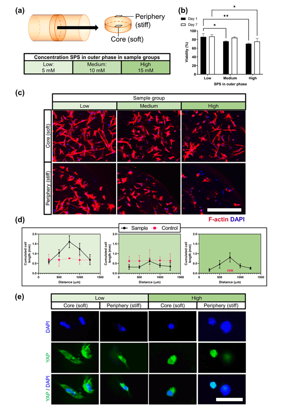 图6.含径向刚度梯度的中空水凝胶中的MSC行为。