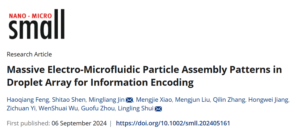 近期,华南师范大学水玲玲教授、金名亮研究员团队介绍了一种利用平面式介电泳在微滴阵列中精确操纵粒子组装的方法,通过巧妙的电极设计在微滴阵列中形成多样的微图案,展示了其在信息编码、动态电子令牌构建以及防伪技术应用中的潜力。相关研究以“Massive Electro‐Microfluidic Particle Assembly Patterns in Droplet Array for Information Encoding”为题目,发表在期刊《Small》上。