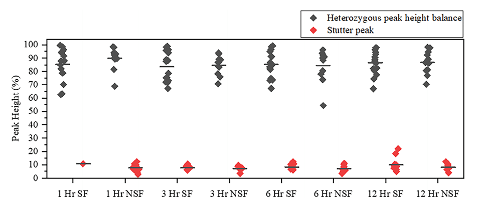 3、在对性交后不同时间点采集的阴道拭子样本进行测试时,该技术能够成功区分单源(男性)和混合源短串联重复序列(STR)分型。
