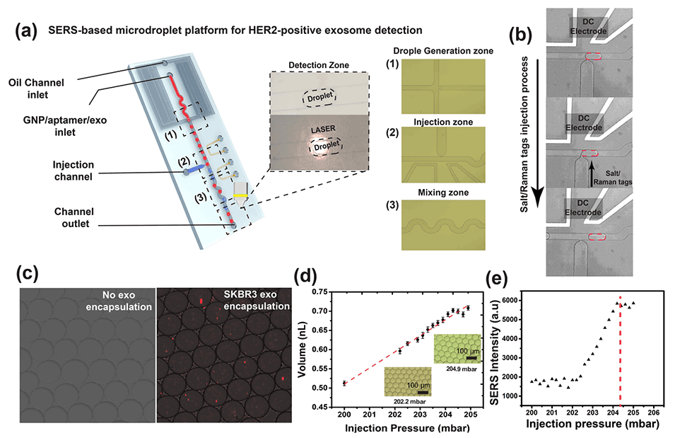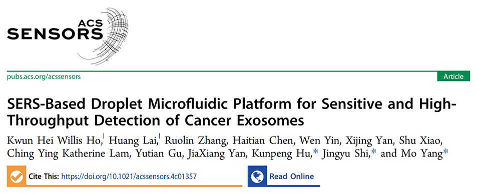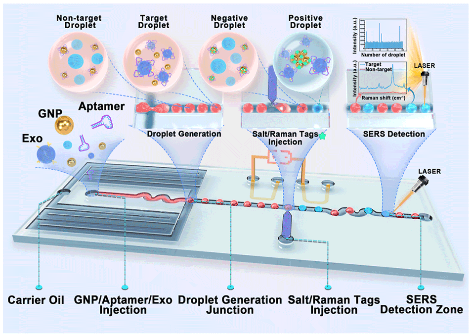近期,香港理工大学杨莫教授团队联合中山大学附属第三医院胡昆鹏团队开发了一种基于表面增强拉曼光谱(SERS)的液滴微流控平台,旨在实现对乳腺癌细胞来源的HER2阳性外泌体的快速、灵敏检测,为临床应用提供支持。相关研究以“SERS-Based Droplet Microfluidic Platform for Sensitive and High-Throughput Detection of Cancer Exosomes”为题目发表于期刊《ACS Sensors》。