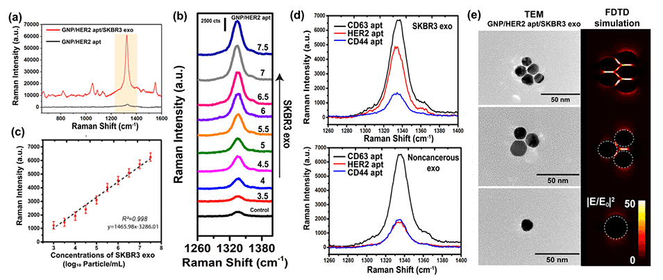 图5.基于SERS的微滴平台用于检测从细胞系中提取的HER2阳性外泌体。