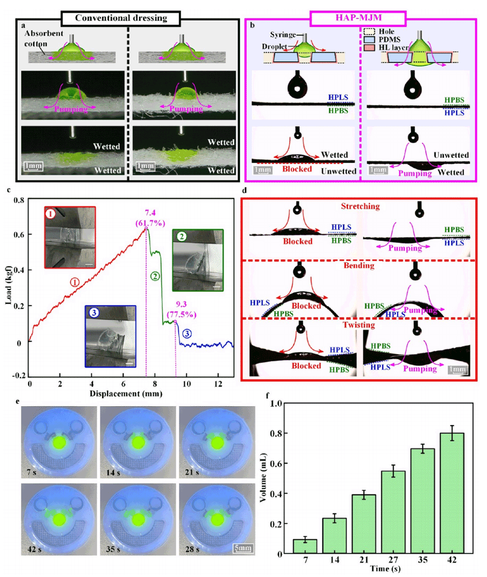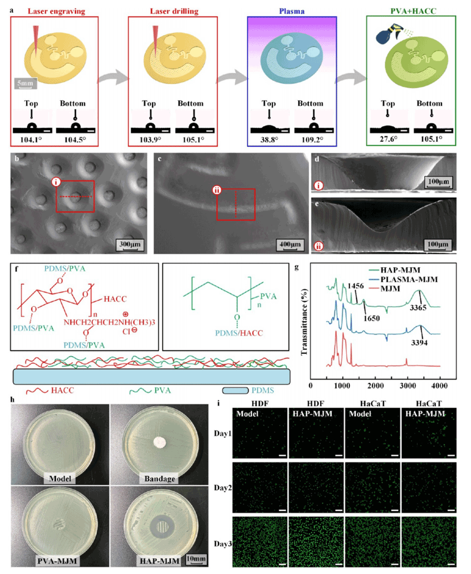 4、长期稳定性:MJM表面涂覆的HACC和PVA不仅提供了抗菌效果,还增强了膜的亲水性,确保了长期连续的单向流体传输能力。