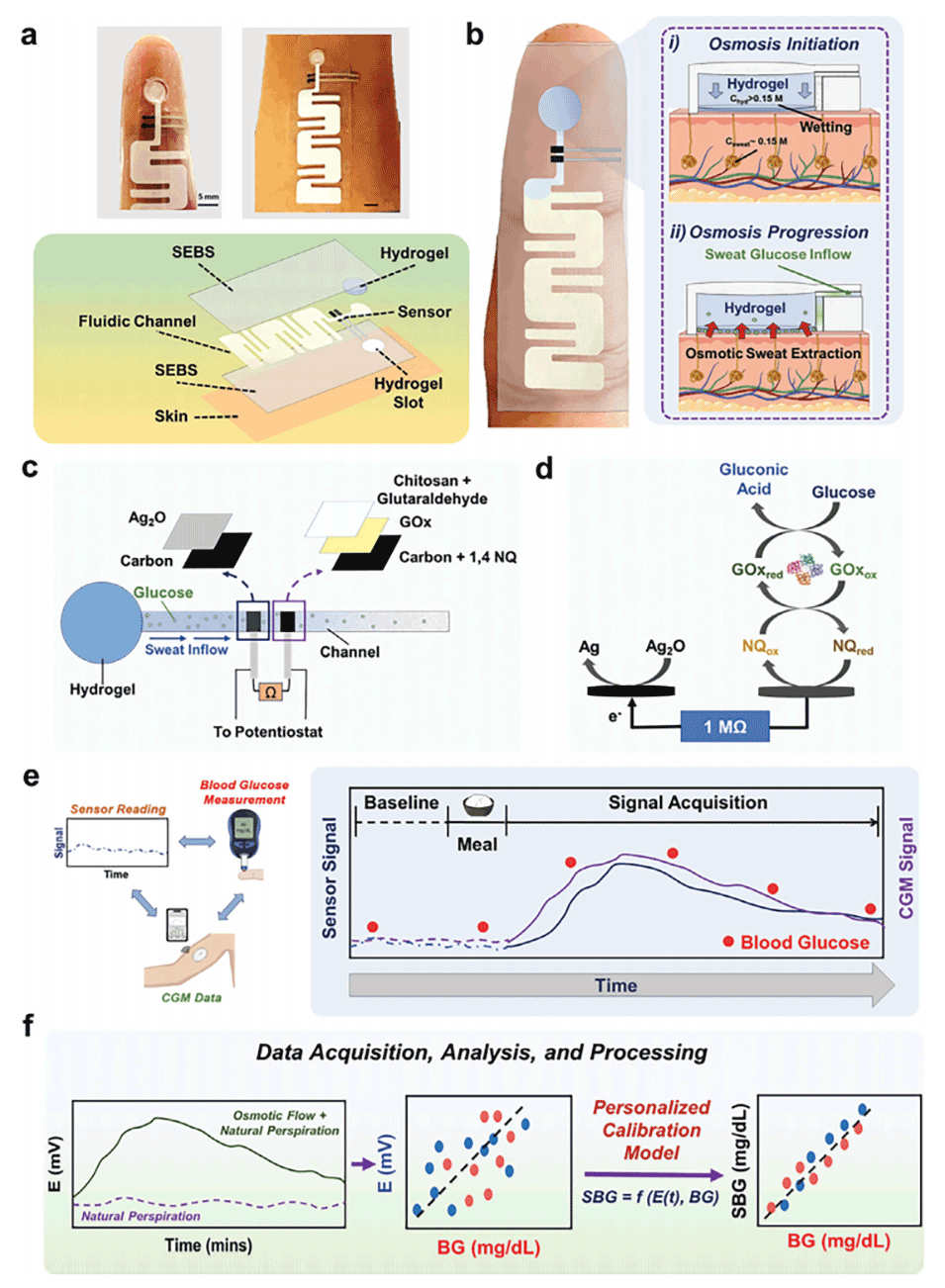 图1.基于渗透驱动汗液提取的可穿戴葡萄糖监测系统。