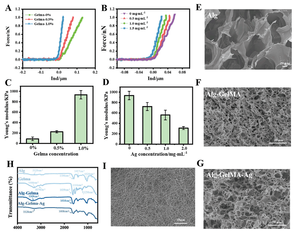 2、准备水凝胶溶液:在中间通道中,混合海藻酸盐、甲基丙烯酸酐化明胶(GelMA)、银纳米线和光引发剂,形成水凝胶溶液。
