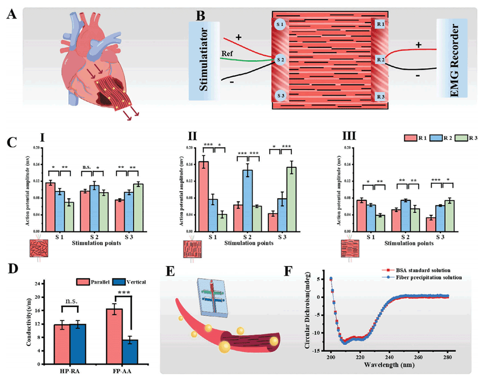 工程化的水凝胶贴片被广泛用作机械支持生物材料,特别是导电成分的引入可恢复心肌梗死后被阻断的电脉冲信号的传导。然而心肌组织具有对齐排列的结构,节律性地向心同步收缩是其显著特征。尽管一系列导电水凝胶被设计开发用于心肌组织工程,但开发具有长程有序电传导特性的各向异性心脏贴片仍然面临巨大挑战。