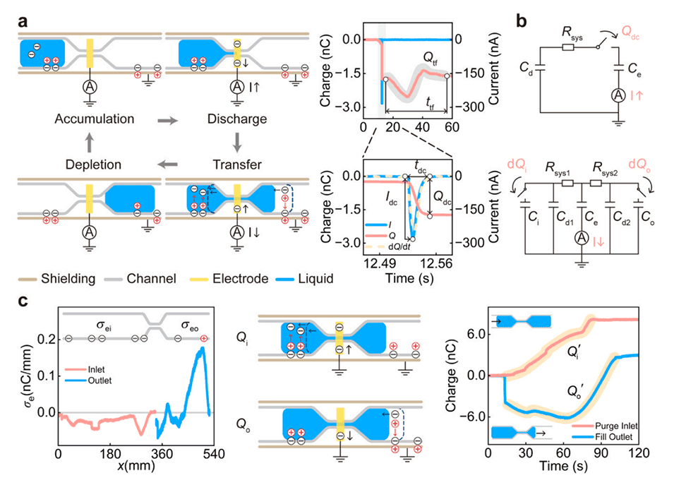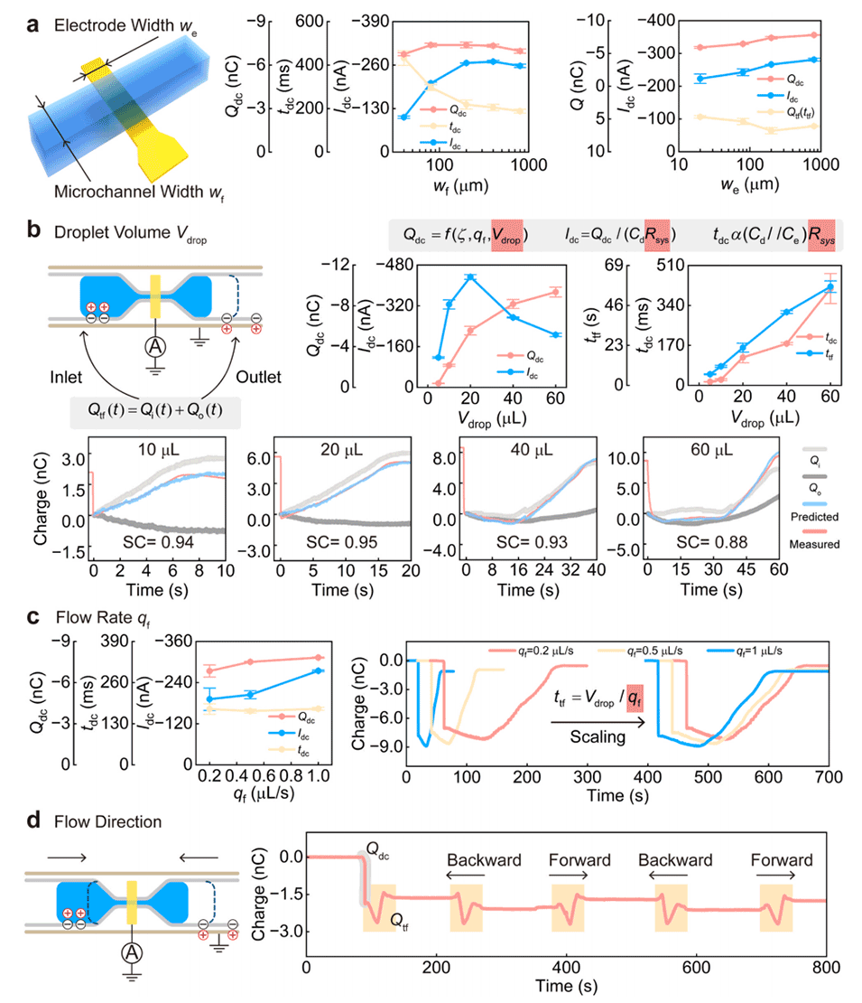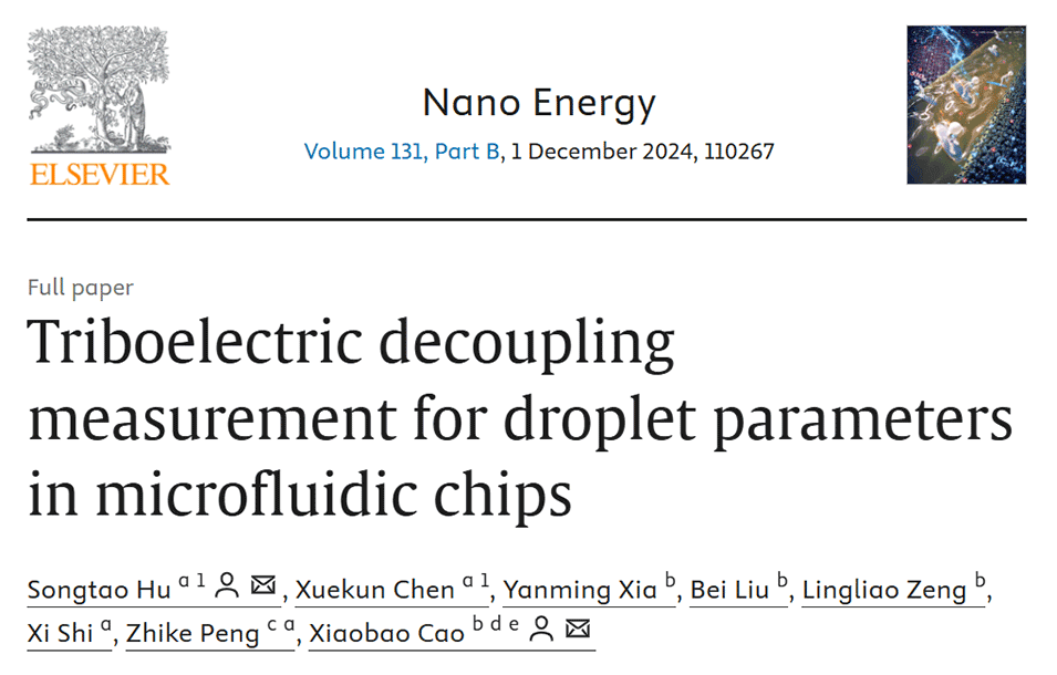近期,上海交通大学胡松涛教授团队联合广州实验室曹小宝研究员团队提出了一种基于体效应摩擦电原理的微流控芯片设计,成功实现了液滴运动参数的解耦测量,并进一步应用于电解质浓度测量和核酸特异性检测。相关研究以“Triboelectric decoupling measurement for droplet parameters in microfluidic chips”为题目发表于期刊《Nano Energy》。