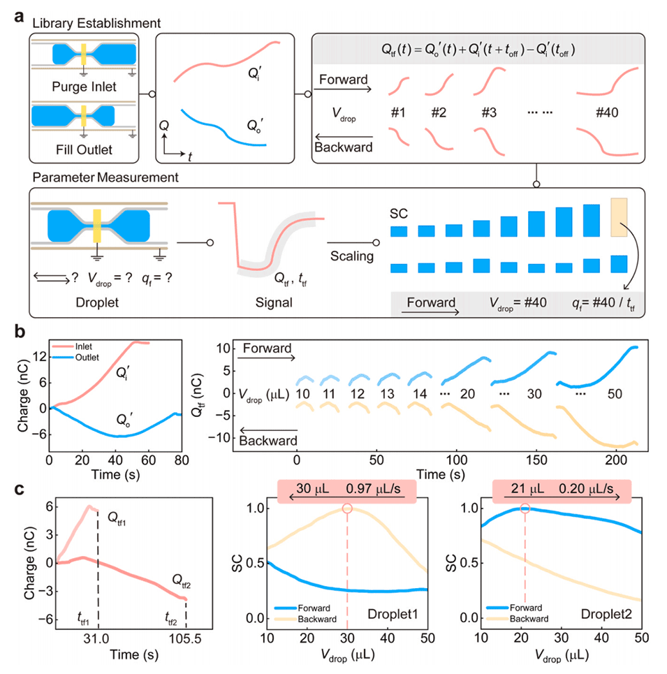 4、基于这些特征,成功实现了液滴体积、流速和流向的解耦测量。此外,该方法还被应用于浓度梯度微流控芯片中,能够测量电解质浓度,并扩展到核酸的特异性检测。