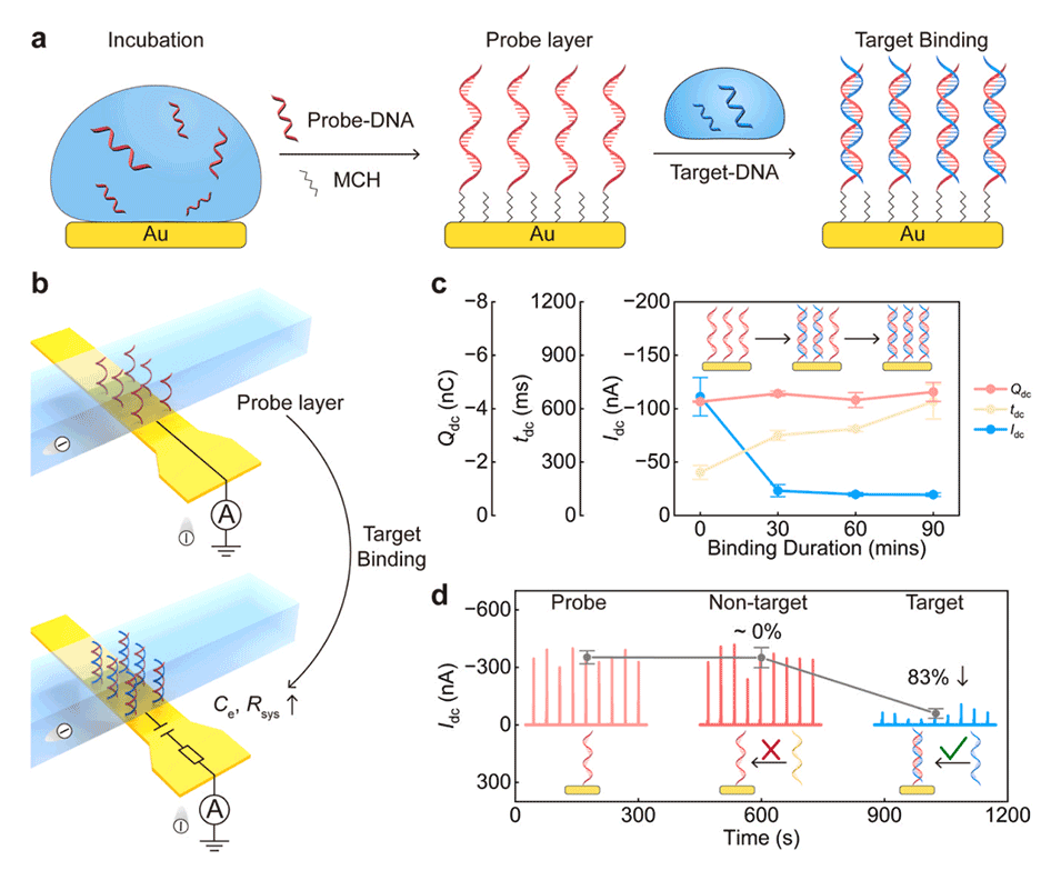 图6.使用带有体效应TENG的微流控芯片进行核酸特异性检测。