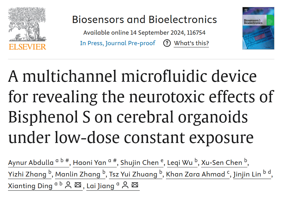 近期,上海交通大学丁显廷教授团队与上海交通大学医学院附属新华医院江来团队合作,开发了一种用于人脑类器官培养的微流控芯片,以揭示低剂量恒定BPS暴露对脑类器官的神经毒性。相关研究以“A multichannel microfluidic device for revealing the neurotoxic effects of Bisphenol S on cerebral organoids under low-dose constant exposure”为题目,发表在期刊《Biosensors and Bioelectronics》上。