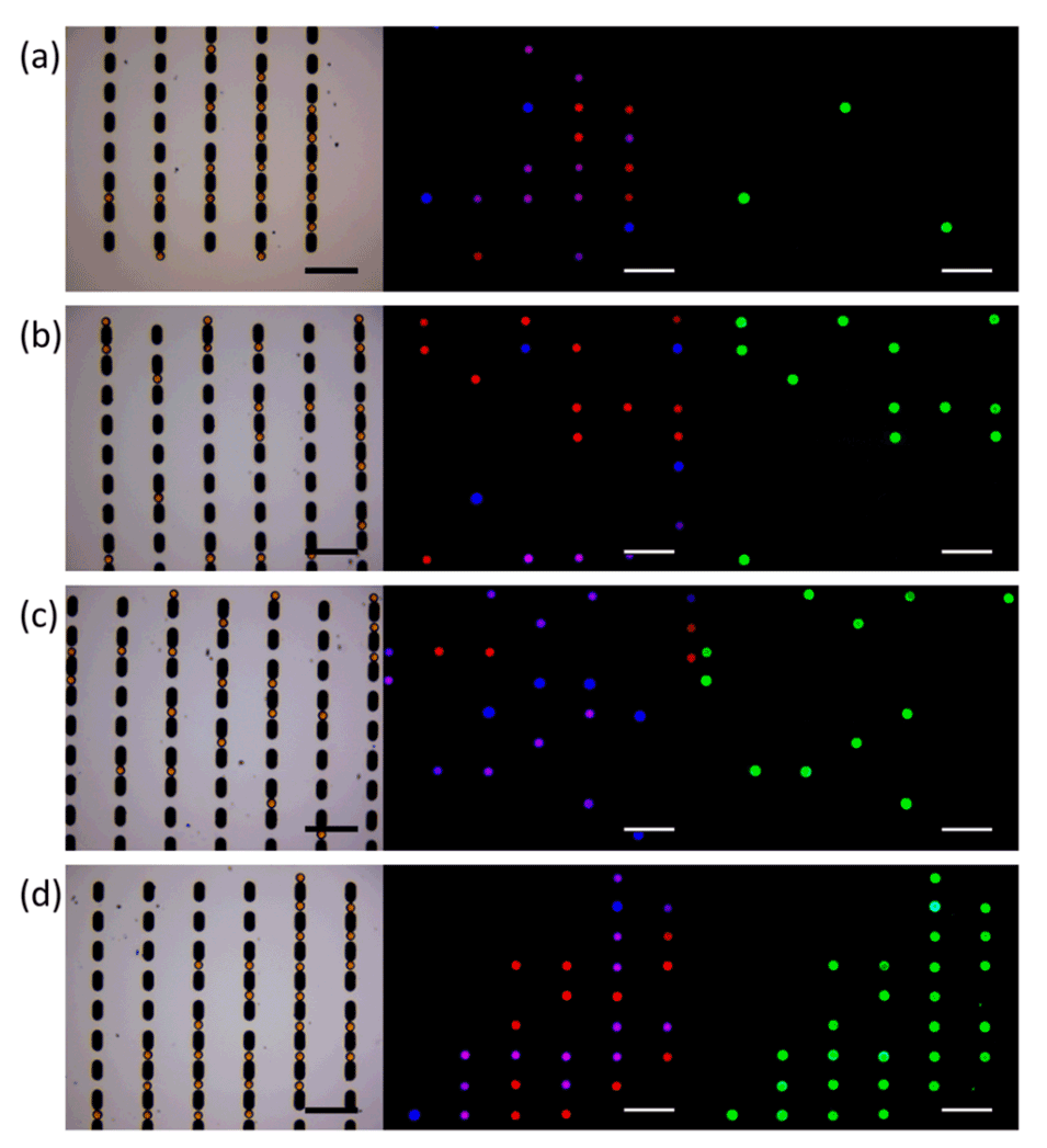 3、精确捕获单个微珠:传统的镍图案可能会捕获多个微珠,导致分析错误。本文通过调整镍图案的尺寸和微珠溶液的流向,确保每个镍图案之间最多只能捕获一个微珠。