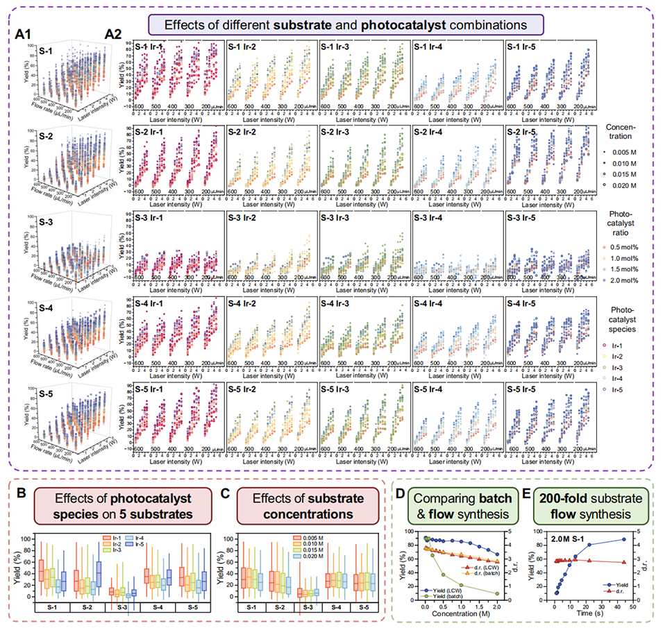 5、人工智能(AI)辅助预测:系统收集的大量数据通过AI算法进行分析,可以预测不同反应条件下的反应结果。AI辅助的跨底物/光催化剂预测能够进一步优化反应条件,提高反应效率和产率。