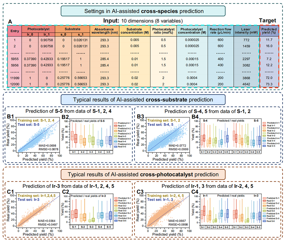 4、通过AI辅助的跨底物/光催化剂预测,展示了该系统在化学合成研究中的潜力,能够快速优化反应条件,推动未知化学空间的探索。