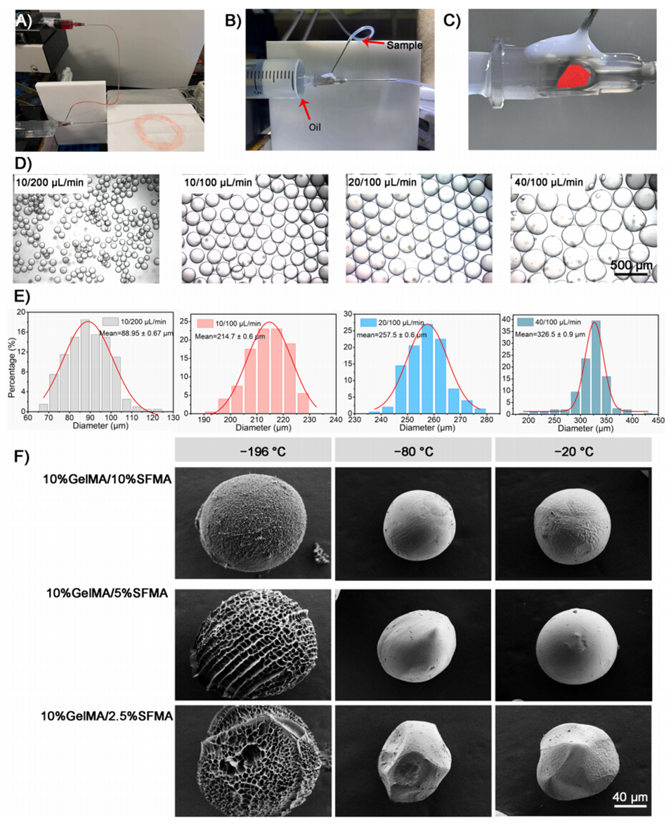 3、冷冻干燥:生成的微球在不同的冷却温度下进行冷冻干燥,以形成多孔结构。研究表明,在-196°C(液氮温度)下冷冻的微球能够形成理想的多孔表面结构。