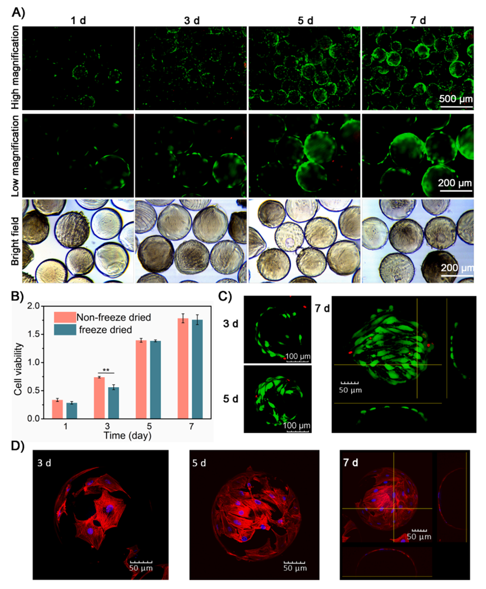 最终,制备的多孔微球不仅具有良好的生物相容性,还能有效支持间充质干细胞的增殖,为后续的组织修复提供了良好的载体。