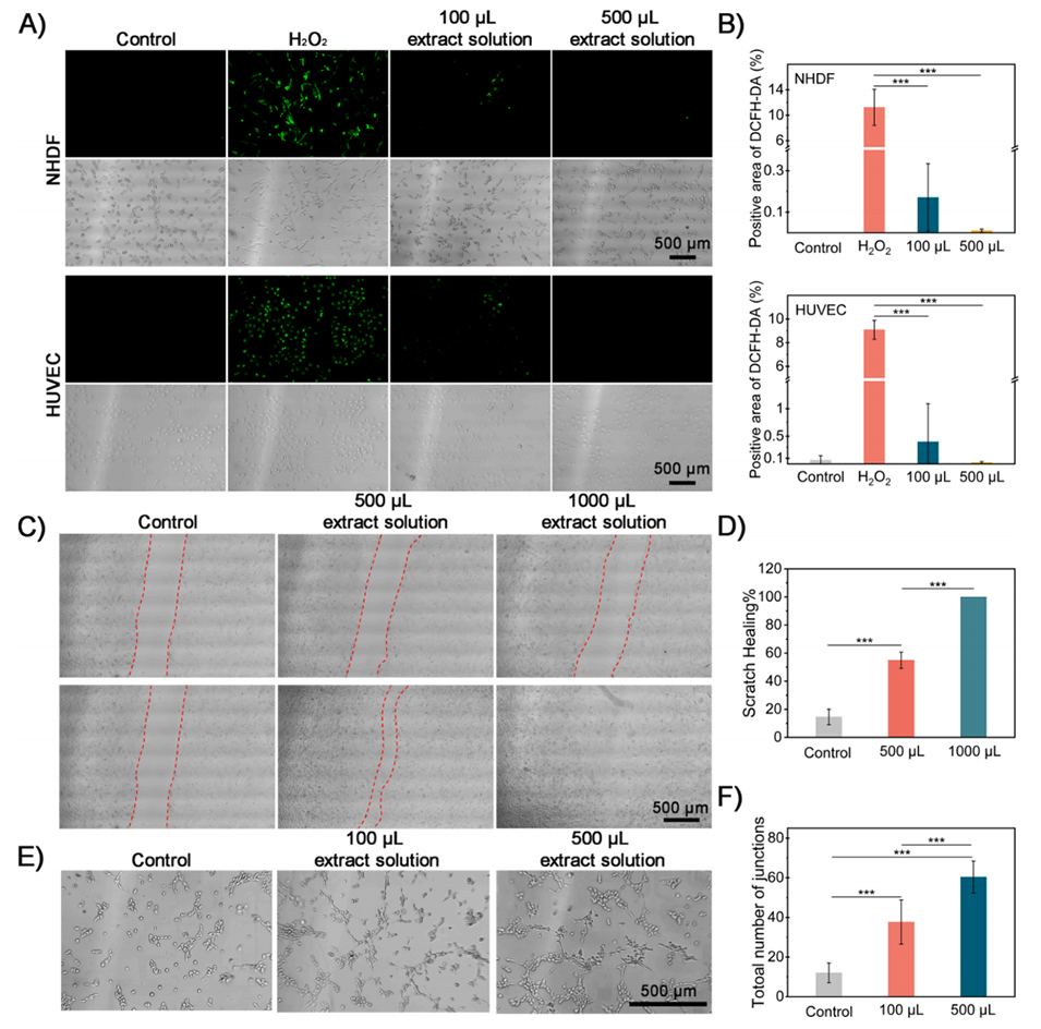 图6.MSC-GSM提取溶液对NHDF和HUVEC细胞的影响。