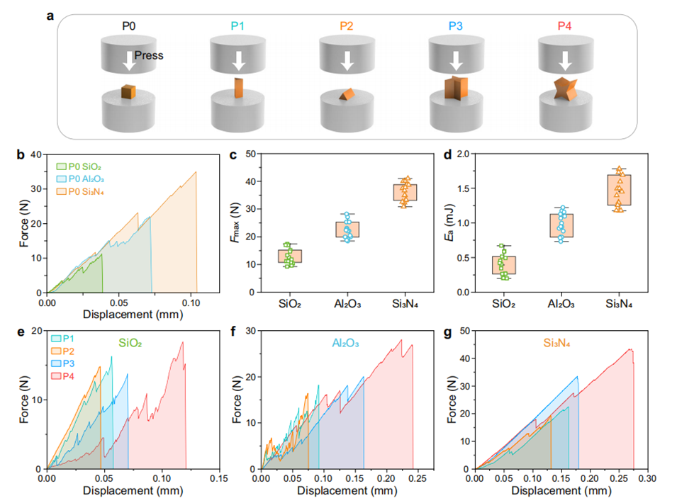 图4.截面为正方形、等腰三角形和星形的烧结微粒(MP)的压缩试验。